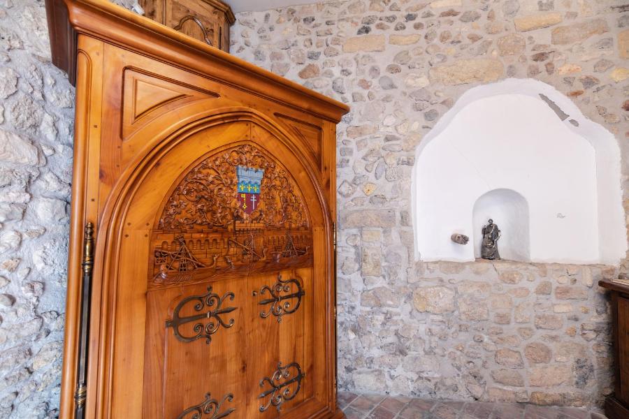 Die Einzigartigkeit des Erlebnisses erreicht ihren Höhepunkt, wenn Sie den Weg zum Glockenturm einschlagen. Es ist ein seltenes Privileg, Zugang zu diesem privaten Turm zu haben, der denjenigen, die sich dorthin wagen, eine unvergessliche visuelle Belohnung bietet. Von dort oben ist das 360-Grad-Panorama atemberaubend: Die Stadt breitet sich Ihnen zu Füßen aus, mit ihren Ziegeldächern, dem majestätischen Profil der Kathedrale Saint-Just-et-Saint-Pasteur und der Silhouette des Donjon Gilles Aycelin. Es ist ein exklusiver Aussichtspunkt, eine private Loge mit Blick auf die Geschichte der Stadt.