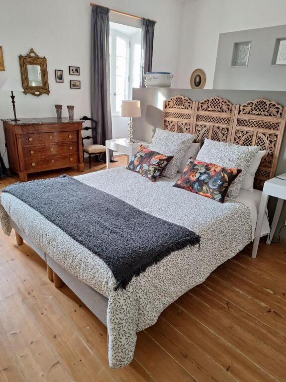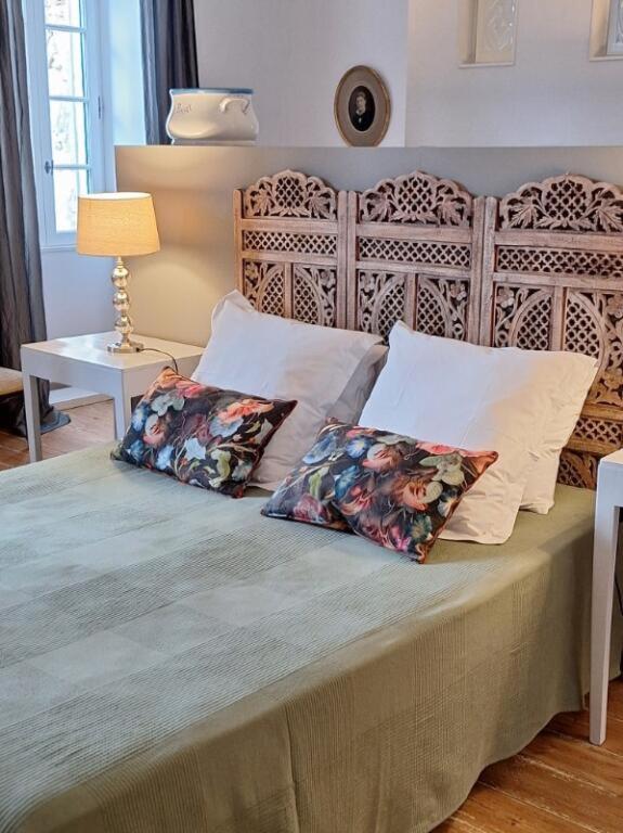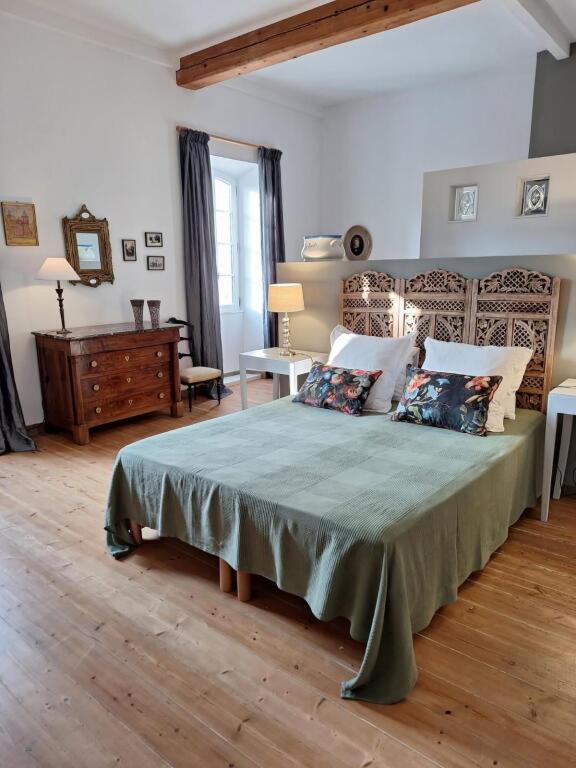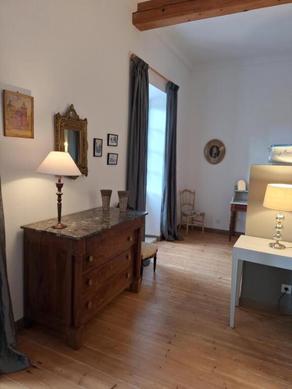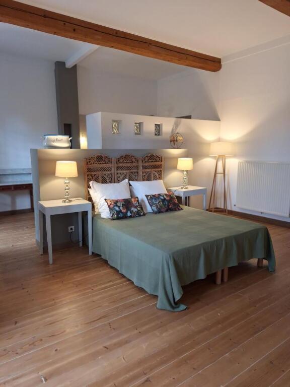 Das Zimmer der Capoulade, das sich im Obergeschoss dieses typischen südfranzösischen Hauses befindet, bietet einen großzügigen Raum von 42m². Ein komfortables Bett von 160 cm sowie ein Schreibtischbereich sind vorhanden. Das angrenzende Badezimmer mit begehbarer Dusche verleiht diesem Ort, der von der Atmosphäre vergangener Jahrhunderte geprägt ist, einen Hauch von Modernität. Ein direkter Zugang zu einem privaten Salon, geschmackvoll dekoriert und mit Sesseln ausgestattet, ermöglicht es, sich in einer intimen und ruhigen Umgebung zu entspannen oder zu lesen.