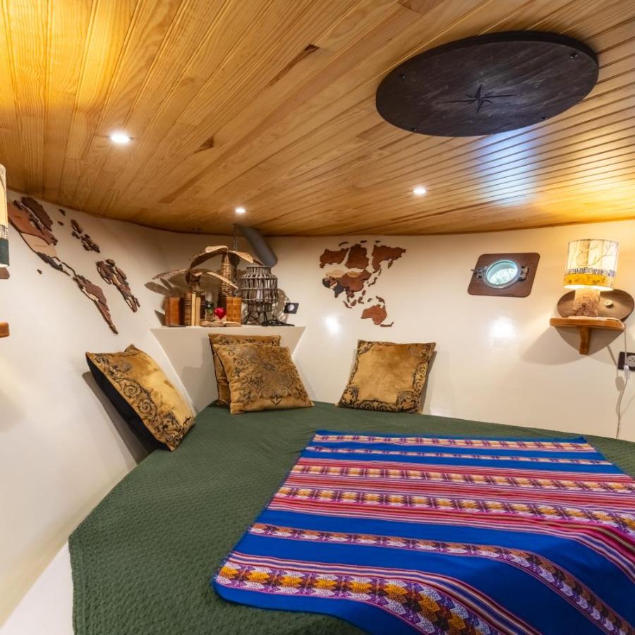 Im Bug des Bootes begeistert die Antoine-Fuet-Kabine, auch bekannt als Kapitän Moède, diejenigen, die eine maritimere und außergewöhnlichere Atmosphäre suchen. Ihr Bett passt sich der Form des Rumpfes an, ganz im Sinne klassischer Yachten, und bietet ein einzigartiges Schlaferlebnis. Der Legende nach benutzte dieser Korsar Goldmünzen als Munition; heute sind es die Ruhe und die Originalität des Ortes, die Ihre Beute ausmachen. Jede Kabine verfügt über die notwendige moderne Technologie, mit strategisch platzierten USB-Anschlüssen, um bei Bedarf verbunden zu bleiben.