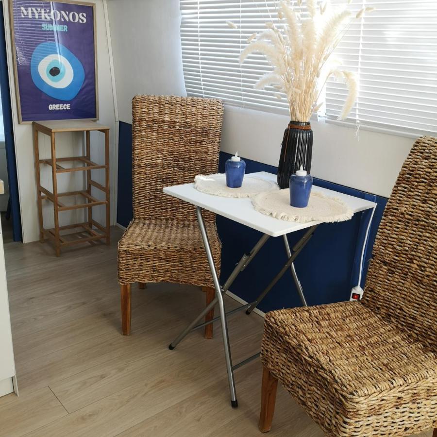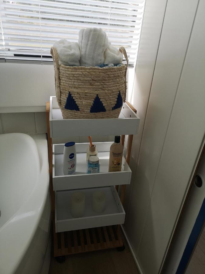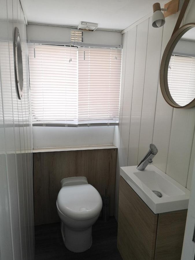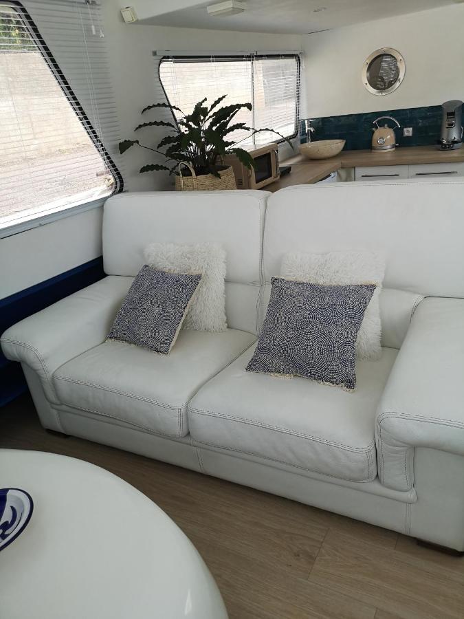 L'interno della barca è ottimizzato per offrire tutto il necessario per un soggiorno piacevole. Un'ampia stanza principale include un salotto con televisione, una zona pranzo e una cucina con tutte le attrezzature essenziali: microonde, piano cottura in vetroceramica, bollitore e macchina da caffè Senseo. Tè e caffè sono inoltre messi a disposizione degli ospiti, un gesto apprezzato per iniziare bene la giornata o per rilassarsi la sera. La camera matrimoniale, adiacente a questo spazio, assicura un comfort ottimale con biancheria di qualità e tutto il necessario, dagli asciugamani ai prodotti per la toilette forniti.
